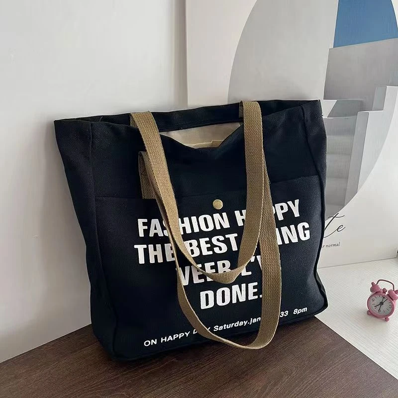 Canvas bag ins schoolgirl Korean large capacity letter shoulder bag tote bag simple fashion canvas bag manufacturer