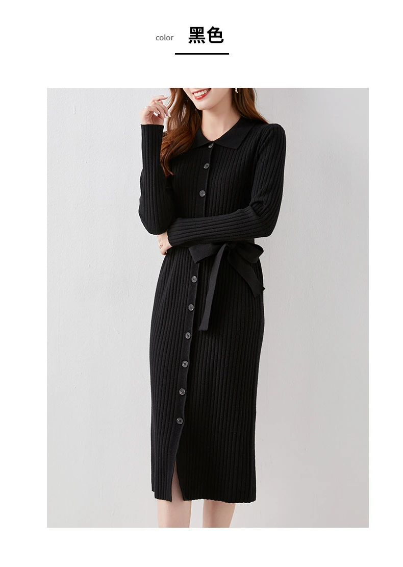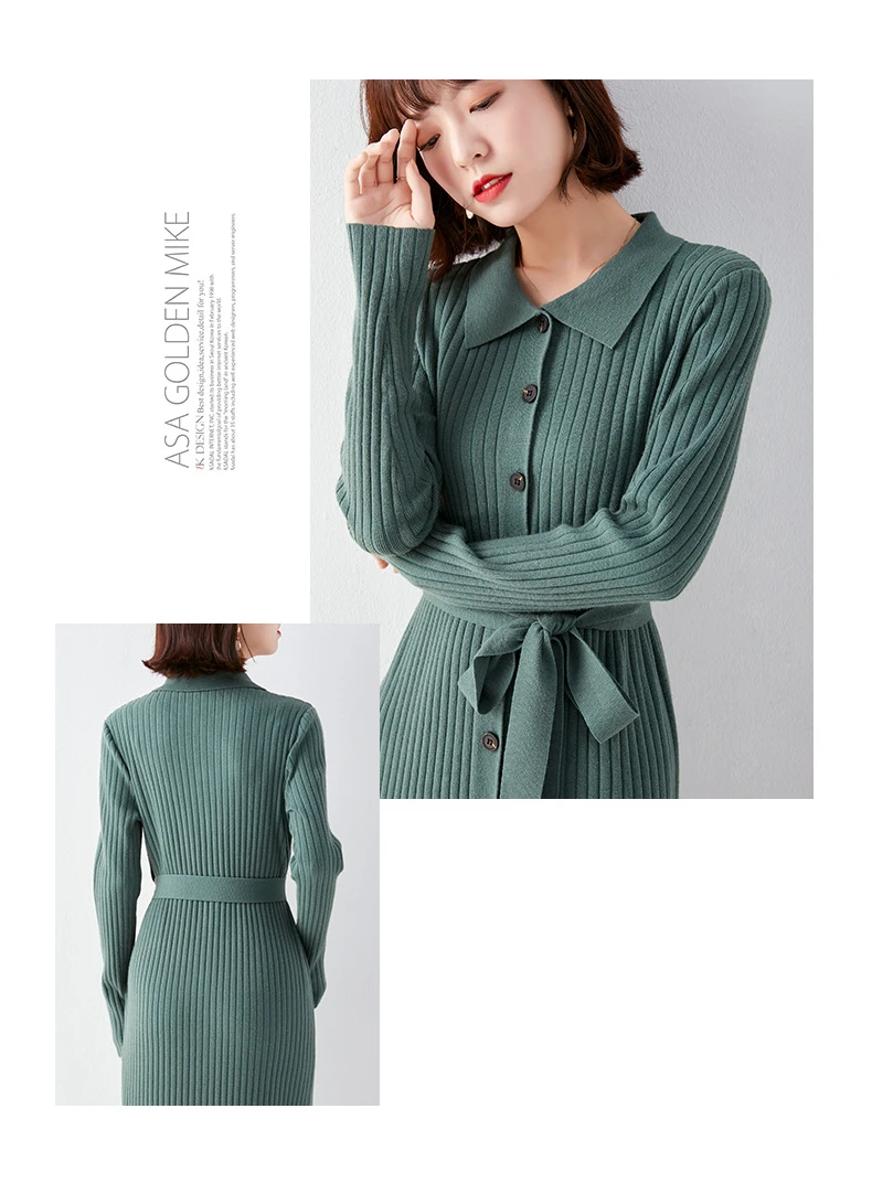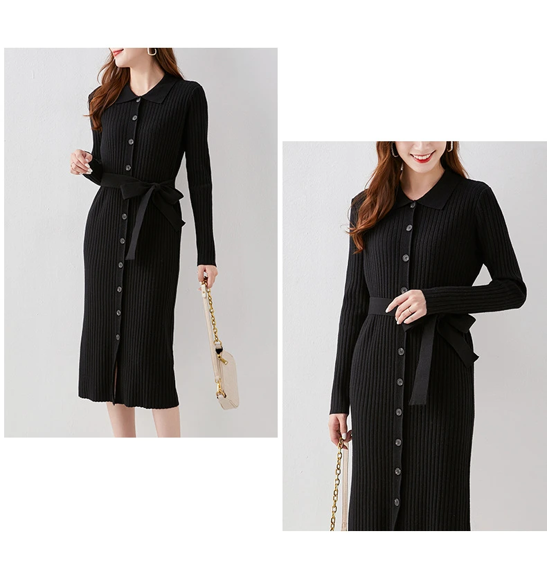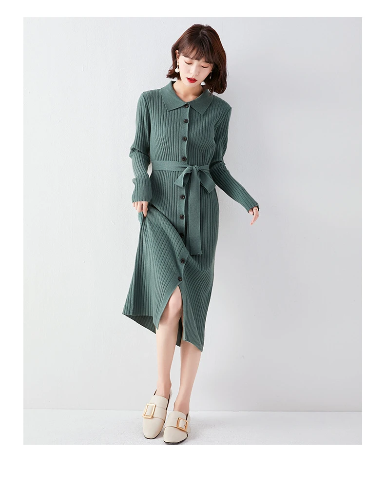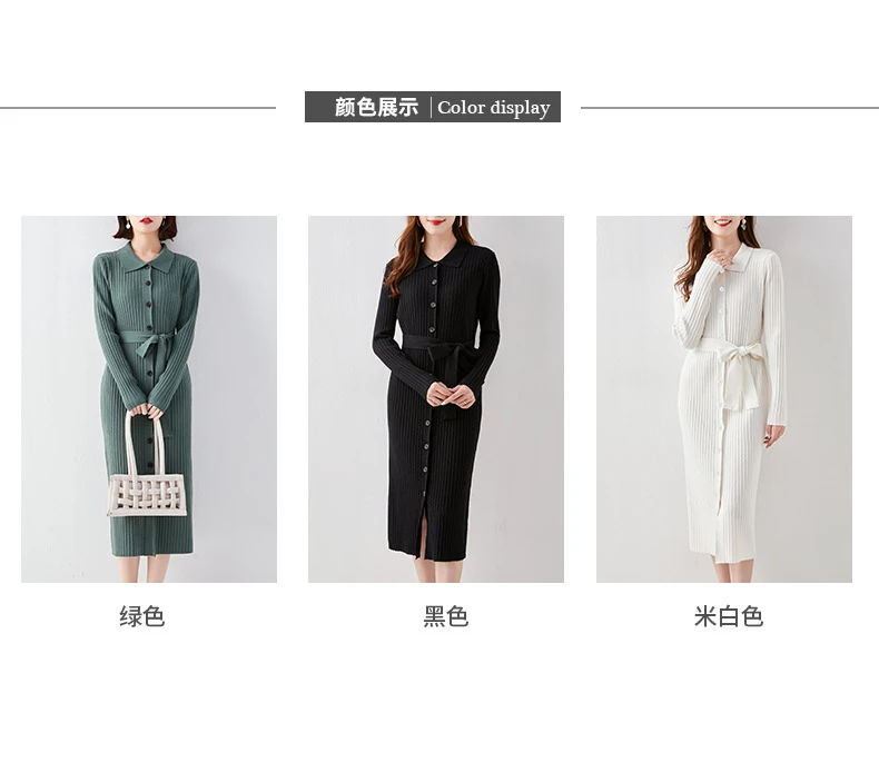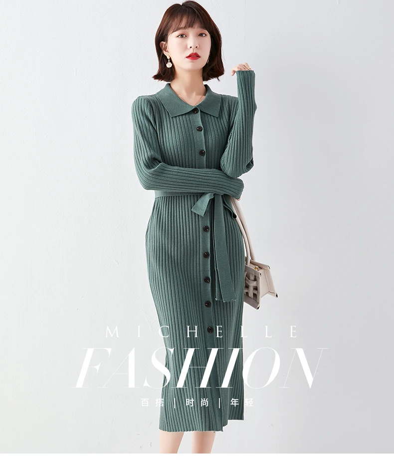 Retro lapels cross-border knitting dress autumn and winter 2020 new women's clot
