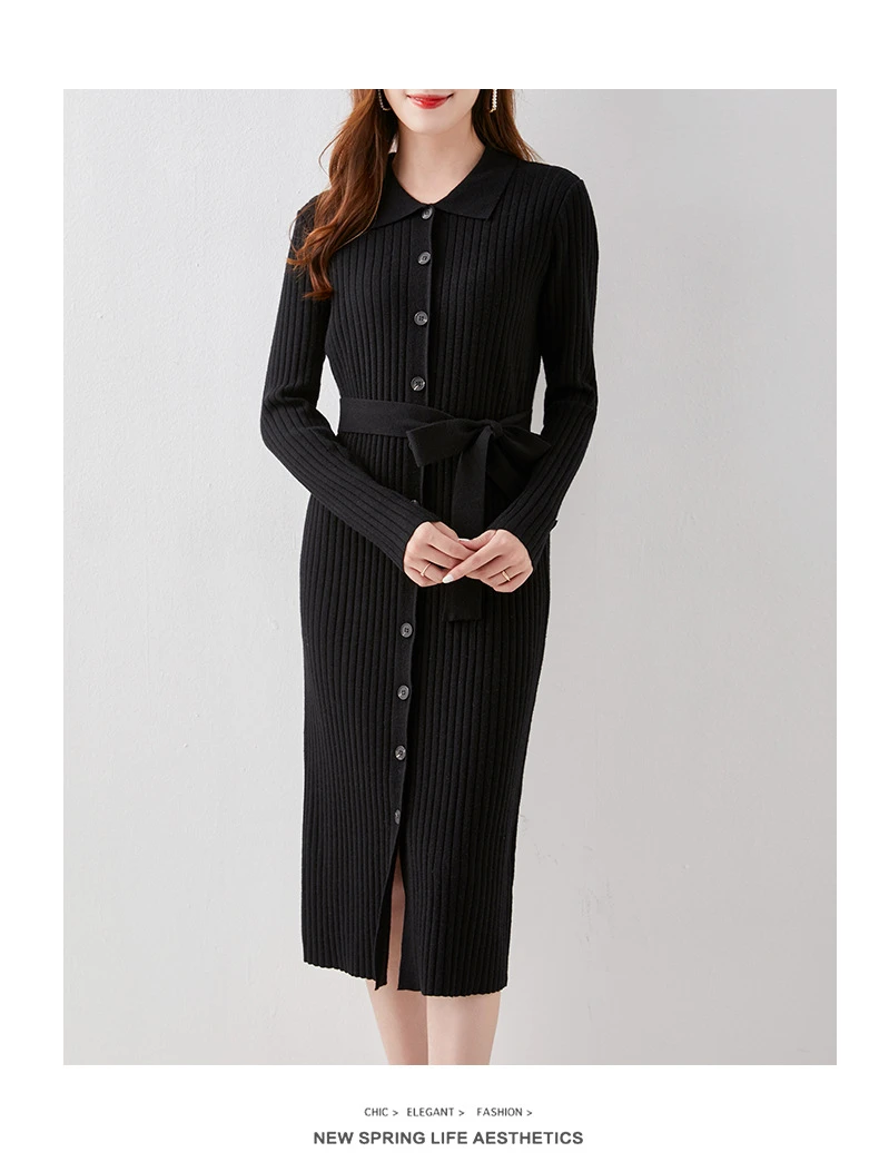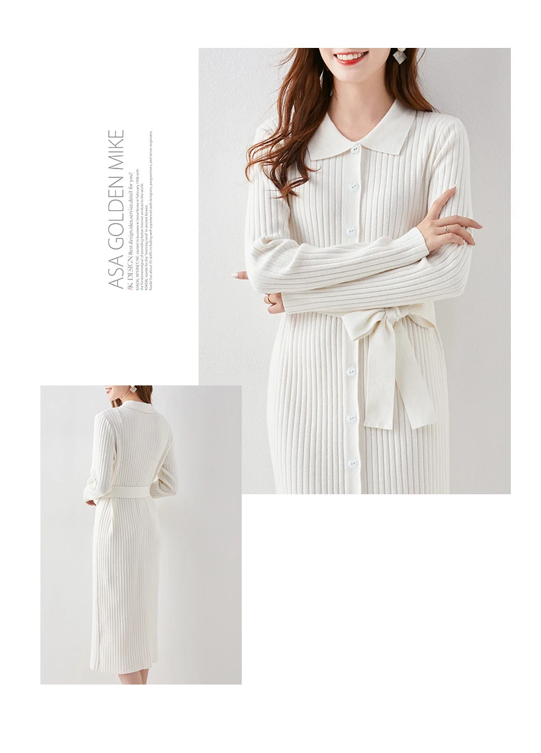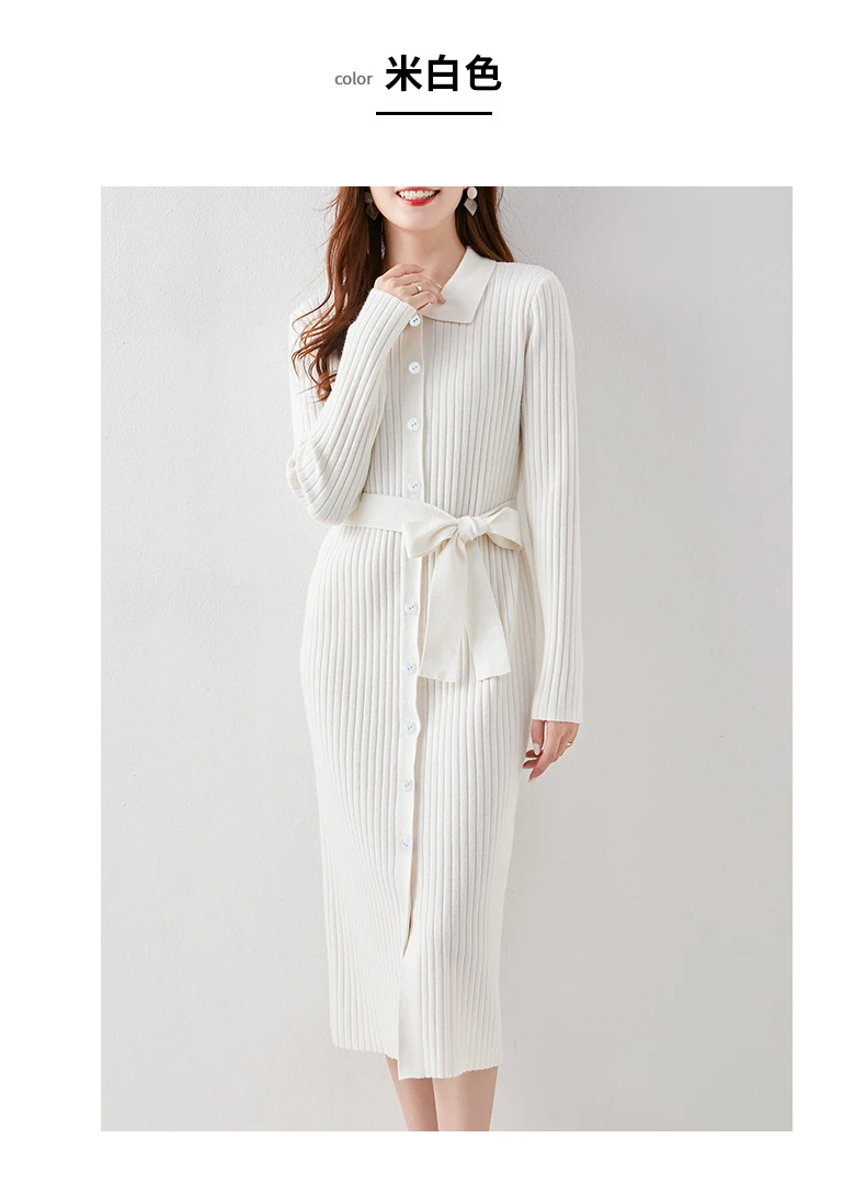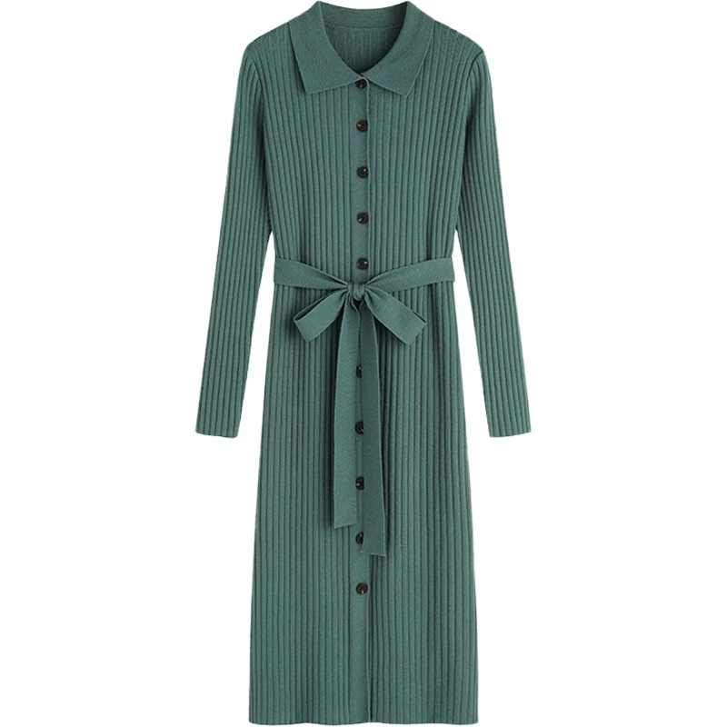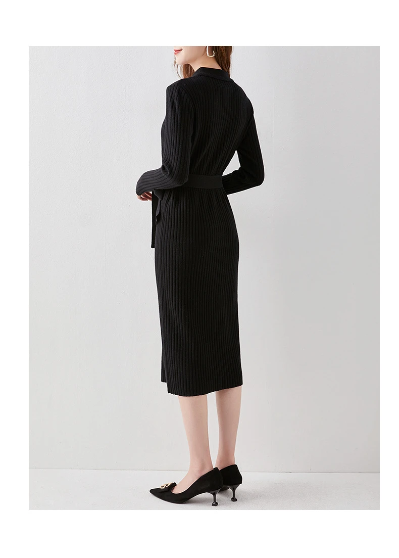 Retro lapels cross-border knitting dress autumn and winter 2020 new women's clot