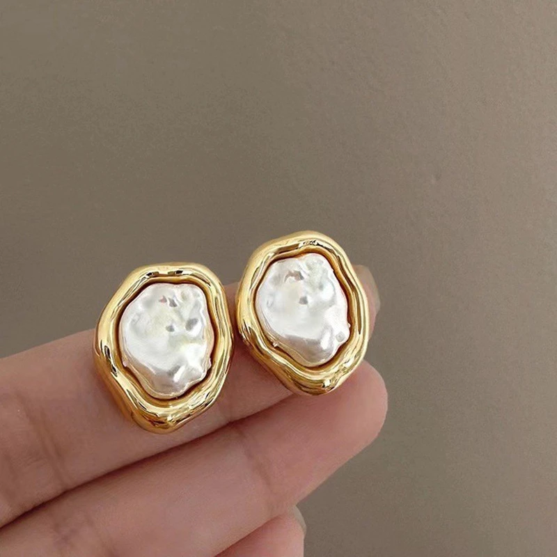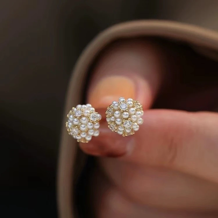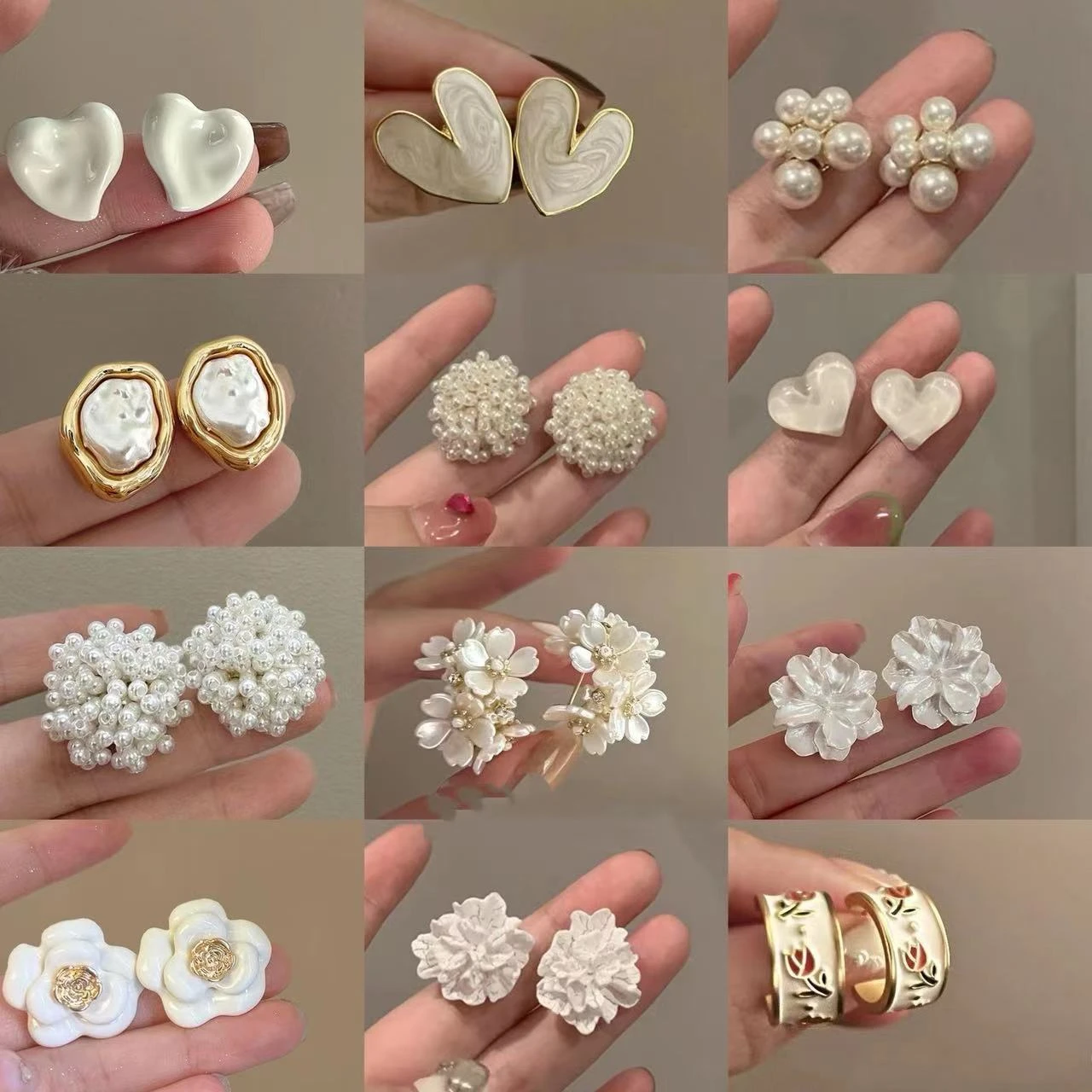 Silver needle French flower love pearl stud earrings elegant and high-end retro earrings niche temperament new earrings for women