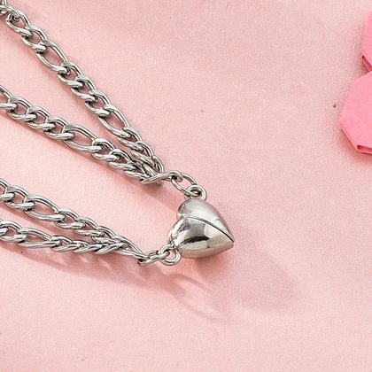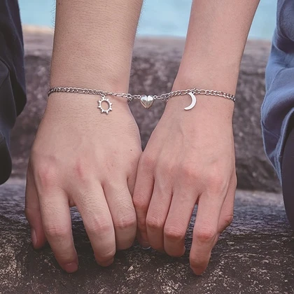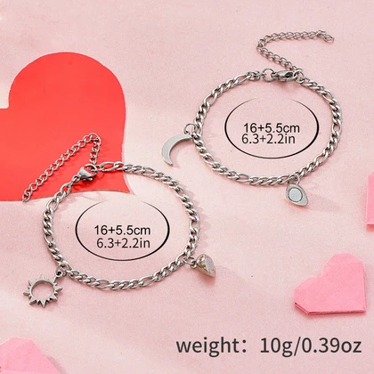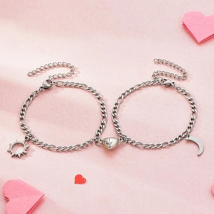 2pcs/set of vintage stainless steel simple style sun moon pendant bracelet, heart accessories magnetic buckle attract, couple bracelet girlfriend bracelet, Valentine's Day gift