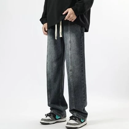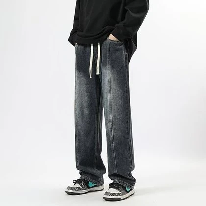 Vintage Washed Drape Loose Wide Leg American Grey Gradient Elastic Waist Men's C